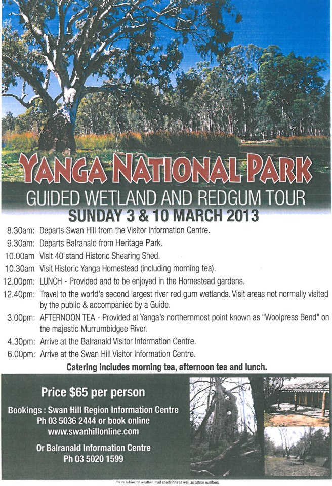 * Redgum Tour at Yanga National Park - Sunday March 3rd and 10th. Please download flier below.