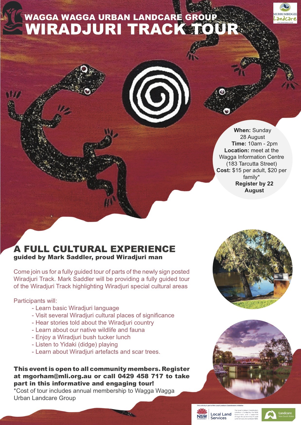 Cost: $15 per adult, $20 per family (includes annual membership of Wagga Urban Landcare Group)
