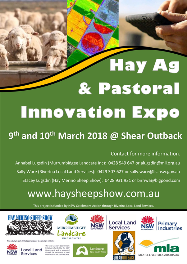 The expo is an initiative of Hay Merino Breeders Association and is supported by Riverina Local Land Services, Murrumbidgee Landcare Inc, and Meat and Livestock Australia. The expo is funded by NSW Catchment Action through Riverina Local Land Services.